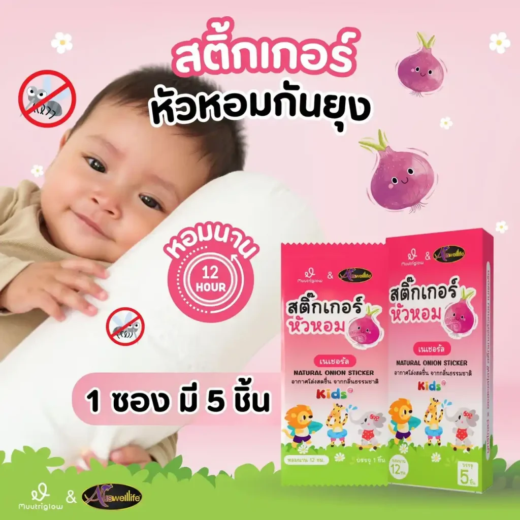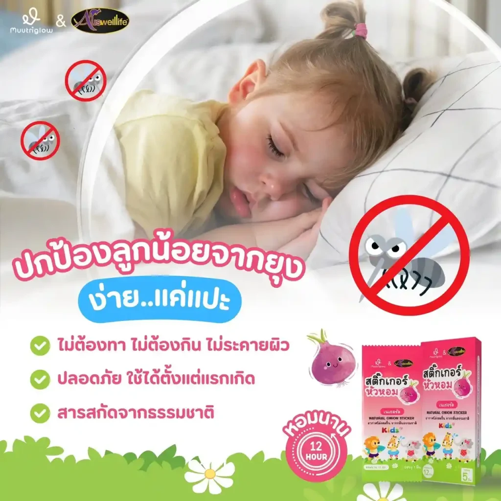หมดกังวล! ไม่ต้องกลัวลูกถูกยุงรบกวนขณะเล่น ✨ สติ๊กเกอร์หัวหอมธรรมชาติ