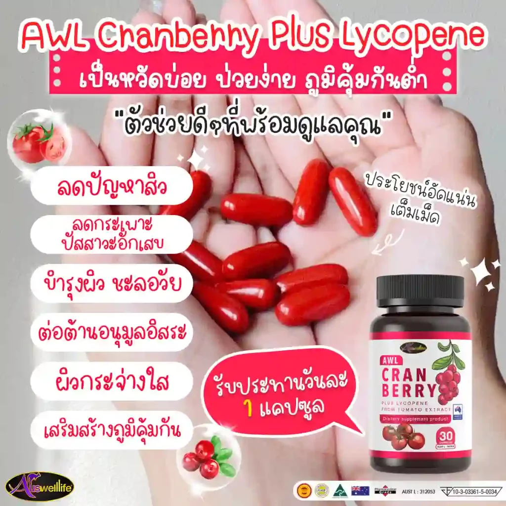 “AWL Cranberry Plus Lycopene from Tomato Extract Dietary Supplement Product” - ข้อมูลสินค้า